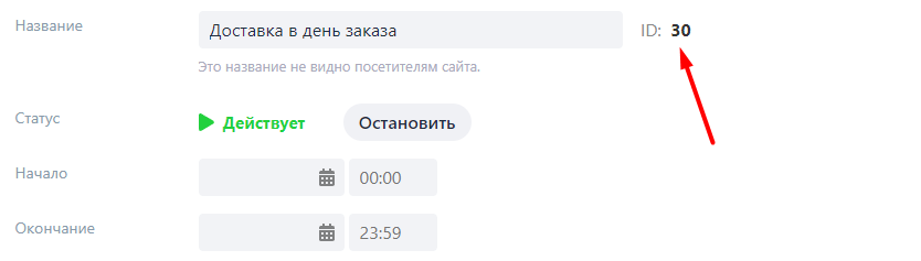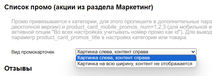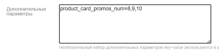 Вместо позиций можно прописать id промокарточки (тоже через запятую). Для этого должна быть включена опция Во всех настройках учитывать номер промо как id. Эта настройка действует на все настройки промокартоек, где необходимо прописать их номера. Id промо можно узнать в настройках промокарточки: