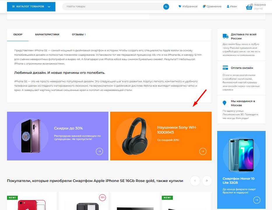 В карточку товара можно вывести промо:
